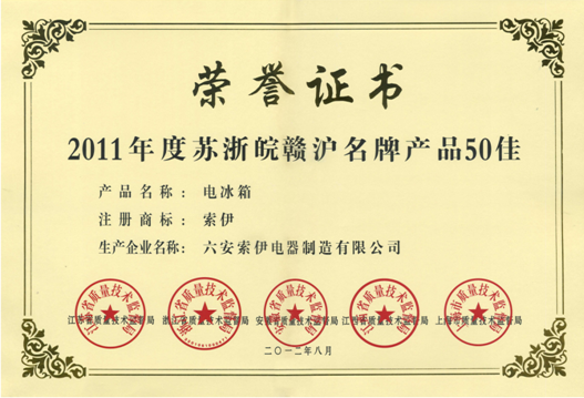 8月31日,2012年全國質量月活動啟動儀式暨首屆安徽省政府質量獎頒獎活動在安徽省人民政府大禮堂隆重舉行。 經過專家評審,社會評議最終審定出“索伊”牌電冰箱榮獲“2011年度蘇浙皖贛滬名牌產品五十佳”榮譽稱號。據了解...