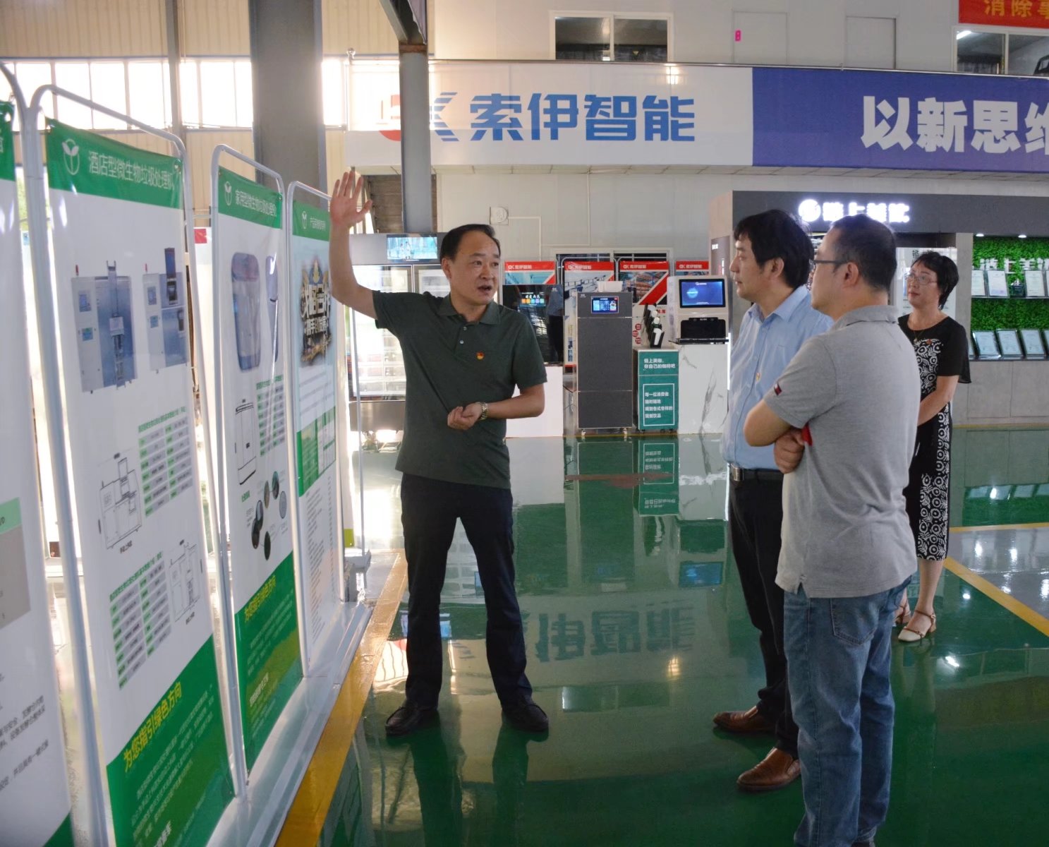 董事長助理倪曙東在智能車間展板前介紹公司系列智能產品