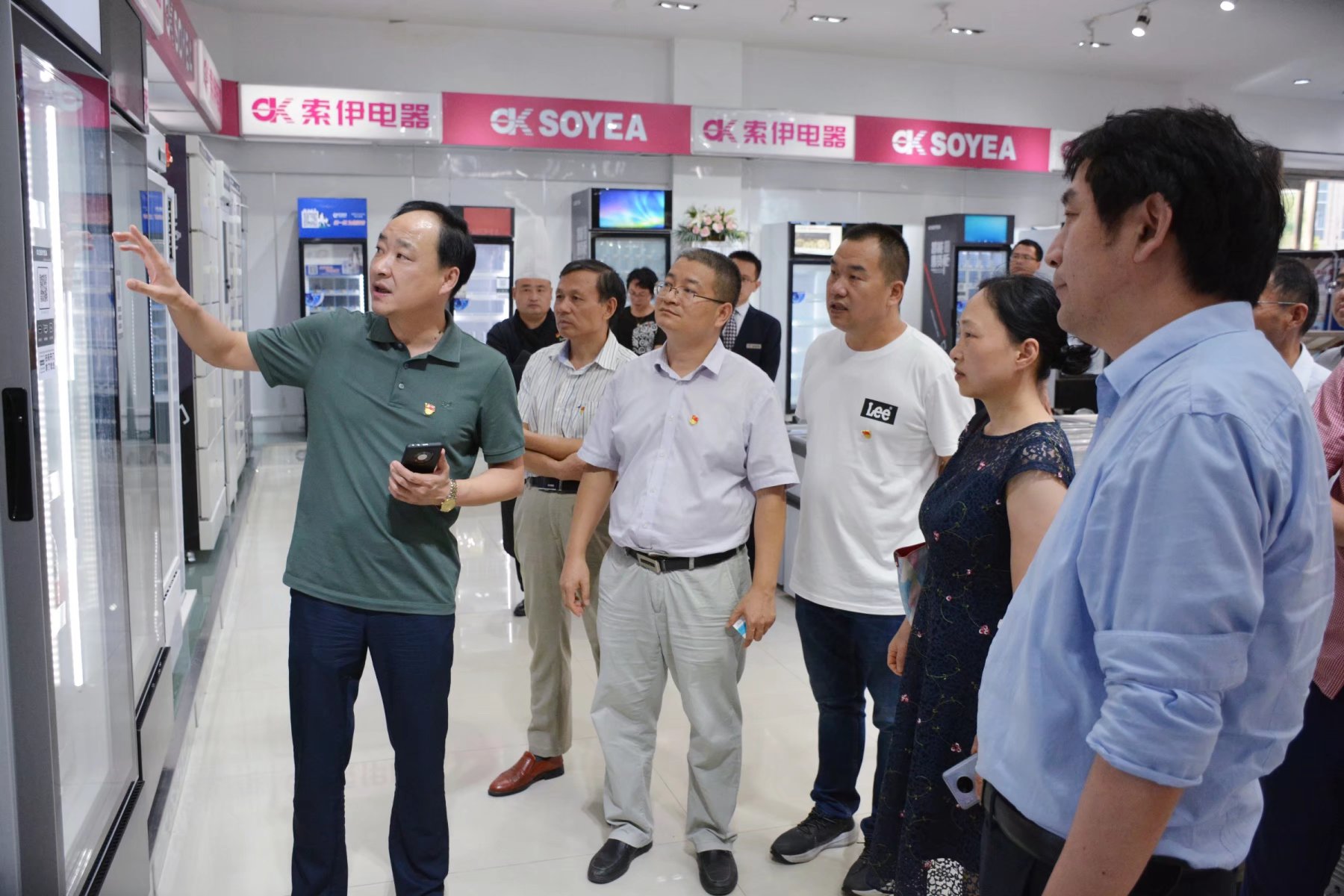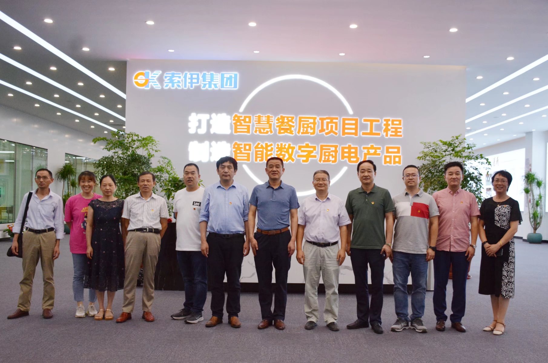 宣書記一行在王瓊峰董事長的陪同下參觀了集團智能制造車間,董事長助理倪曙東對該車間做了介紹,重點介紹了世界首創、中國獨創的智能化數字烹飪機器人產品,以及全球領先、擁有100多項國家專利的智能化數字機器人飲料機產品,并現場解答了各位教授提出的問題。接著又來到索伊電器產品展示廳,參觀了無人售貨柜、牛奶格子柜、高端冷鏈、生鮮自提柜等系列智能產品。大家不停地稱贊,一致表示這些智能產品極大地提高了人們的生活品質,給生活帶來了更多的便利。最后又來到索伊集團轉型展示廳,王瓊峰董事長介紹了企業探索升級、智能轉型、蛟龍得水、蓄勢騰飛的發展歷程,并強調企業只有不斷地通過積極探索、調研和論證,才能尋求適合自身發展的企業規劃、產業道路。企業通過幾年的探索,已經形成以“智慧餐廚項目工程”為核心的發展方向,以“智能化數字廚電新產品”研發、制造和應用為核心的智能化數字化產業集群。最終把錢學森在1994年提出的“烹飪工業化將出現在21世紀中國的第六次產業革命中”這一偉大構想,通過索伊不斷的探索變成現實。