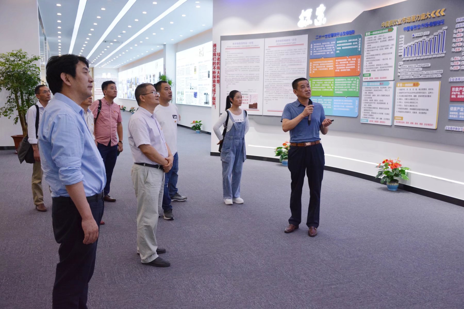 集團董事長王瓊峰在轉型展示廳向大家介紹企業的發展歷程