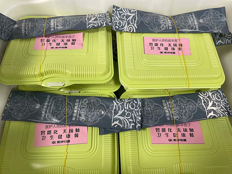安徽索伊集團作為開發區的龍頭企業,也時刻不忘履行企業的擔當和責任,當公司領導得知廣大醫務工作者奮戰在一線,有的連飯都顧不上吃時,主動向開發區領導請示,免費為轄區內的醫護人員和防疫工作者送上由六安索伊君瀾大酒店定制的愛心餐。