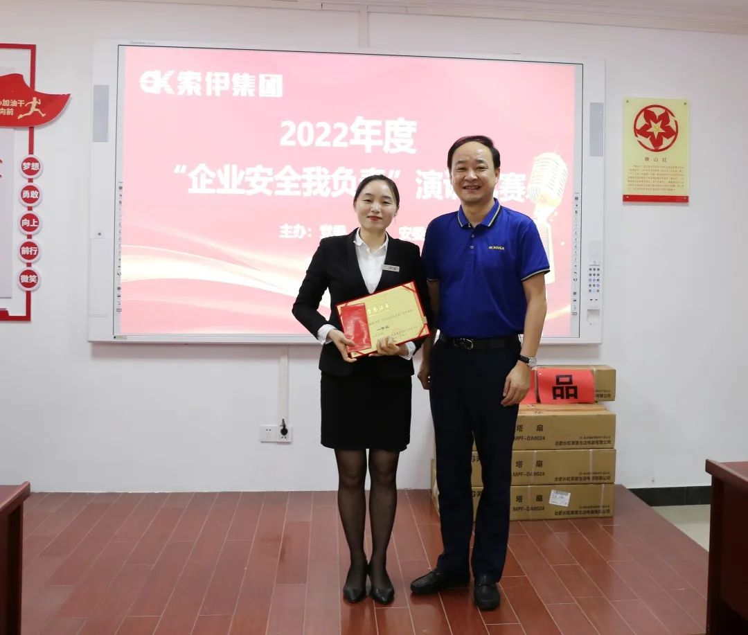 公司董事長(zhǎng)助理倪曙東為演講比賽一等獎(jiǎng)尹瀅頒獎(jiǎng)