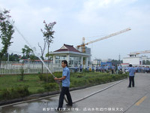 為了進一步強化公司員工消防安全意識,提高抗擊突發事件的應變能力,迅速有組織的安全疏散,掌握正確使用消防栓、滅火器以及逃生的方法,在公司領導的大力支持和各部門的配合下,按照消防部門的要求,2013年夏季消防安全演習于7月31日進行。演習的主要內容是:自救逃生的方法和消防器材的使用。演習現場由公司總經理李兆鵬擔任總指揮,行政管理副部長聶后寶擔任副總指揮,各生產部部門長擔任組員,參加演習人員還有來自各部門的班組長、員工以及全體保安人員。